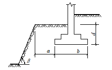 a ——基礎(chǔ)底面外邊緣線至坡頂?shù)乃骄嚯x(m); b——垂直于坡頂邊緣線的基礎(chǔ)底面邊長(m); d——基礎(chǔ)埋置深度(m);