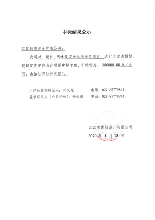 武漢市勘察設計有限公司硬件、網(wǎng)絡及安全運維服務項目中標結(jié)果公示