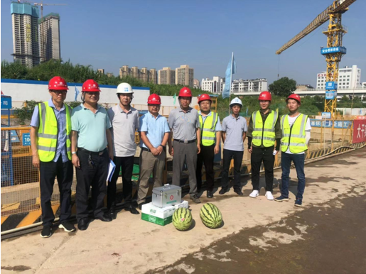 七月以來,武漢已進入三伏中最熱的中伏,今年中伏將持續(xù)20天,高溫已成為天氣的“主旋律”。高溫酷暑下,公司分布在全市各區(qū)域的巖土工程、基礎(chǔ)工程、測繪工程、地質(zhì)工程、檢測監(jiān)測工程……項目部一線工作人員在高溫下堅守崗位,他們搶抓施工黃金季,為了公司的發(fā)展揮汗如雨。公司領(lǐng)導(dǎo)高度重視,董事長廖建生親自部署,要求各部門及時安排防暑降溫物資,注重安全生產(chǎn),同時指示公司各分管領(lǐng)導(dǎo)立即分赴項目現(xiàn)場進行慰問指導(dǎo),察看施工作業(yè)情況,解決實際困難。