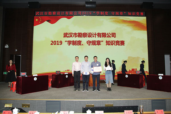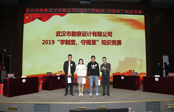 按照競(jìng)賽規(guī)則,比賽分預(yù)賽和決賽兩個(gè)階段進(jìn)行,比賽由個(gè)人必答題、小組必答題和搶答題三個(gè)環(huán)節(jié)組成,比賽題目?jī)?nèi)容涵蓋了公司企業(yè)文化、《績(jī)效目標(biāo)管理辦法》、《差旅費(fèi)管理辦法》、《合同管理辦法》、《員工崗位歸級(jí)管理暫行辦法》、《安全生產(chǎn)與文明施工管理規(guī)定》等公司核心管理制度的內(nèi)容。預(yù)賽階段,12支參賽隊(duì)伍以飽滿的熱情、昂揚(yáng)的斗志、團(tuán)結(jié)的作風(fēng)、拼搏的精神,為大家獻(xiàn)上了一場(chǎng)緊張激烈、精彩紛呈的知識(shí)競(jìng)賽,各隊(duì)比分也一度不相上下,經(jīng)過近一個(gè)小時(shí)的緊張角逐,巖土工程二公司、臨空分公司、設(shè)計(jì)中心3支代表隊(duì)分別以小組第一名的成績(jī)進(jìn)入決賽。預(yù)賽結(jié)束后的間隙休息時(shí)段,同時(shí)設(shè)置了觀眾互動(dòng)答題環(huán)節(jié),讓現(xiàn)場(chǎng)觀眾共同參與答題,賽場(chǎng)氣氛熱烈。決賽環(huán)節(jié)更是高潮迭起、扣人心弦,3支代表隊(duì)的選手配合默契、沉著冷靜、對(duì)答如流,在小組必答題環(huán)節(jié)也是穩(wěn)打穩(wěn)扎,不急不躁,各隊(duì)的比分差距較小。最終經(jīng)過兩輪比拼,設(shè)計(jì)中心代表隊(duì)以240分的高分榮獲團(tuán)體一等獎(jiǎng),臨空分公司代表隊(duì)榮獲團(tuán)體二等獎(jiǎng),巖土工程二公司代表隊(duì)榮獲團(tuán)體三等獎(jiǎng)。公司董事長廖建生、總經(jīng)理施木俊、副總經(jīng)理安永強(qiáng)分別為獲獎(jiǎng)選手頒發(fā)了榮譽(yù)證書和獎(jiǎng)品。