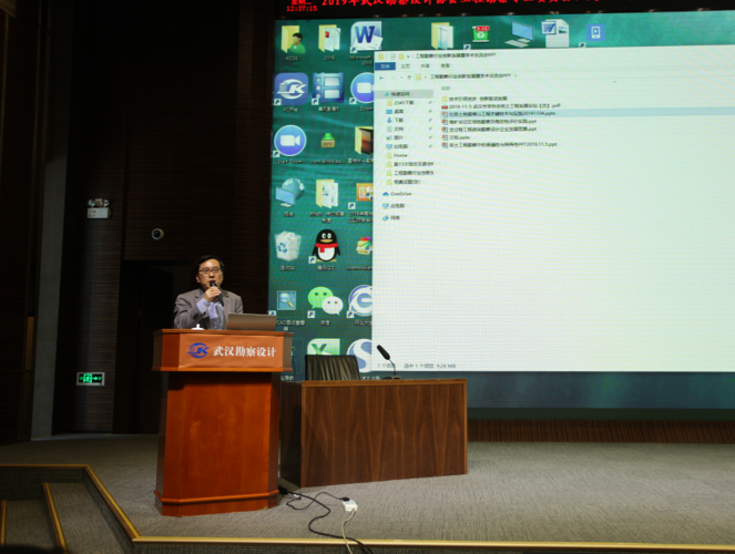中南勘察設計院集團有限公司綜合勘察設計院一所主任工程師朱 佳,做了題為《技術引領進步、創(chuàng)新驅動發(fā)展》的主題報告。中煤科工集團武漢設計研究院有限公司阮壯工程師向與會代表分享了《陜西龍華煤業(yè)尿素綜合利用項目煤礦采空區(qū)場地穩(wěn)定性評價》的主題報告。武漢市政工程設計研究院有限公司地質(zhì)專業(yè)總工劉亞洲做了關于《巖土工程勘察中的普遍性與特殊性問題》的主題報告,針對巖土工程勘察行業(yè)存在的問題進行了探討和交流。中冶集團武漢勘察研究院有限公司工程勘察設計院總工程師姚小波為我們做了主題為《垃圾土地基堆山關鍵技術及工程實踐》的報告,通過對對山體穩(wěn)定性計算推演及監(jiān)控量測的數(shù)據(jù)分析,向我們介紹了垃圾土地基堆山關鍵技術在實踐中的運用。