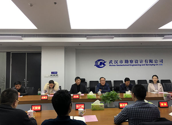 2019年12月17日上午,武漢建筑業(yè)協(xié)會到訪公司開展交流座談,并授予昌廈公司“武漢建筑業(yè)AAA級信用企業(yè)”稱號。武漢建筑業(yè)協(xié)會副會長李淼磊、秘書長李紅青,協(xié)會巖土工程分會副會長冷鋼、秘書長劉新梅、副秘書長汪惠文,勘察公司總經(jīng)理施木俊、副總經(jīng)理蔣濤,昌廈公司總經(jīng)理于廣柏、天漢公司總經(jīng)理王甫強及相關(guān)部門負責人和工作人員參加了會議和授牌儀式。
