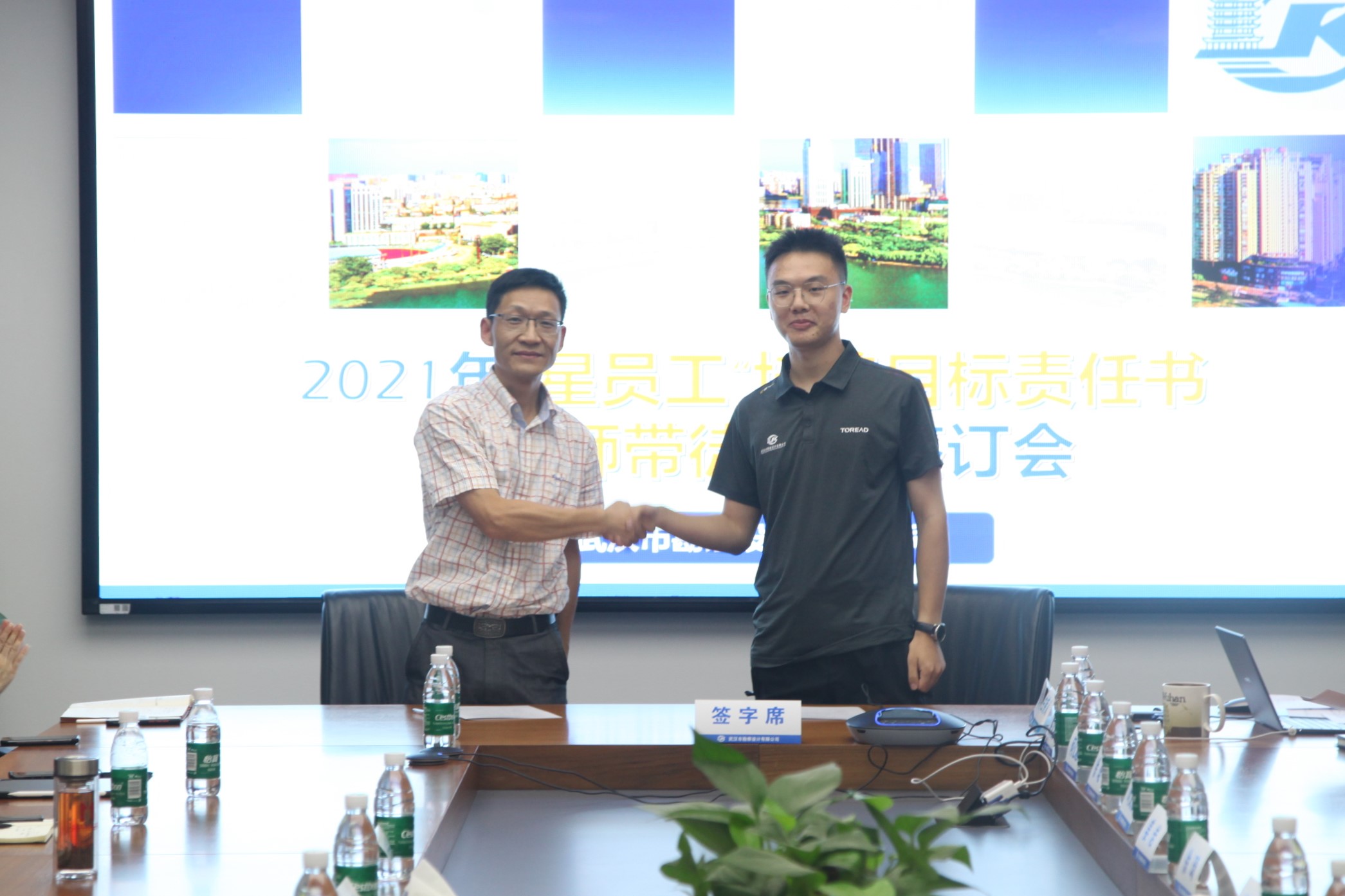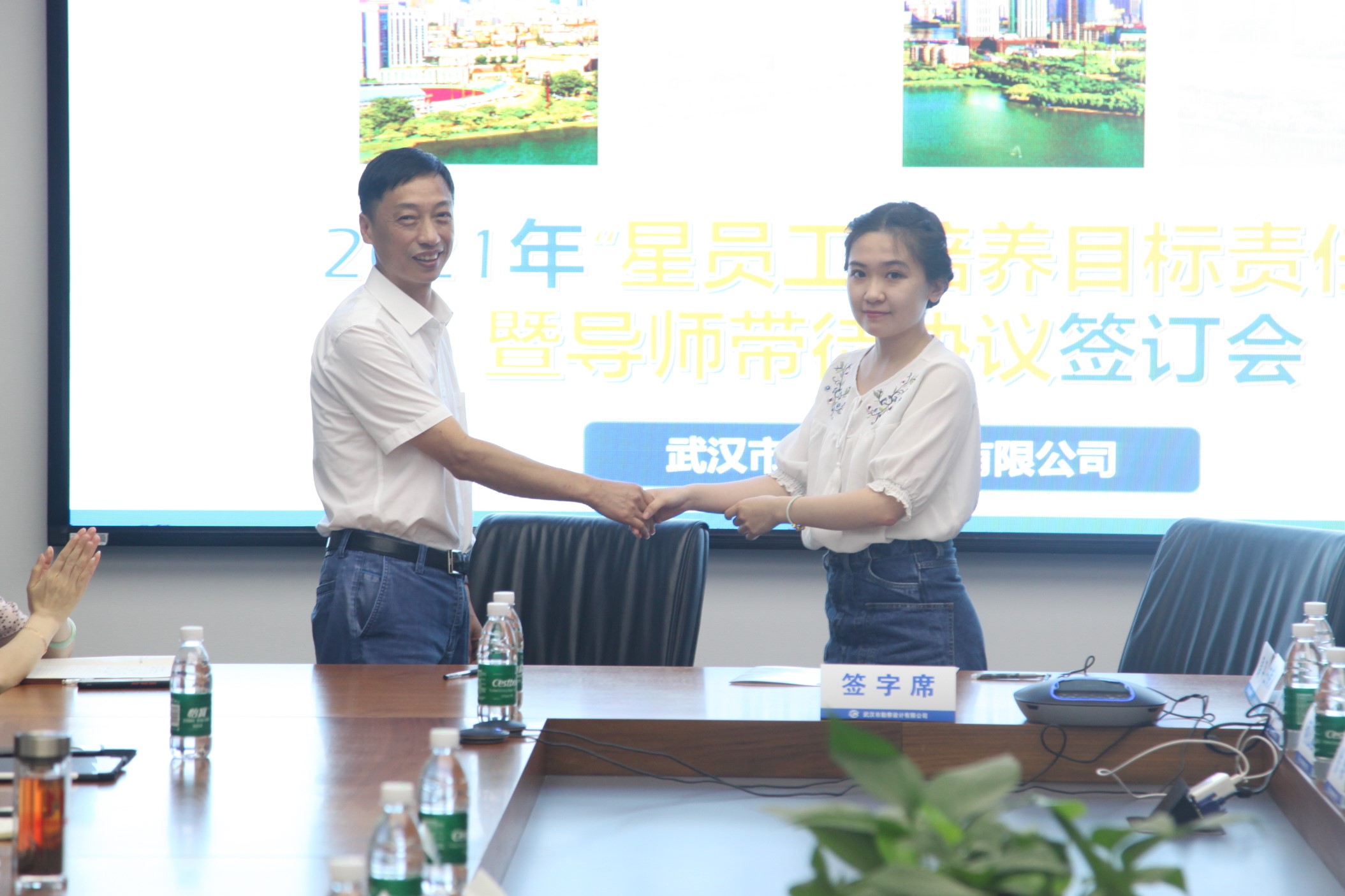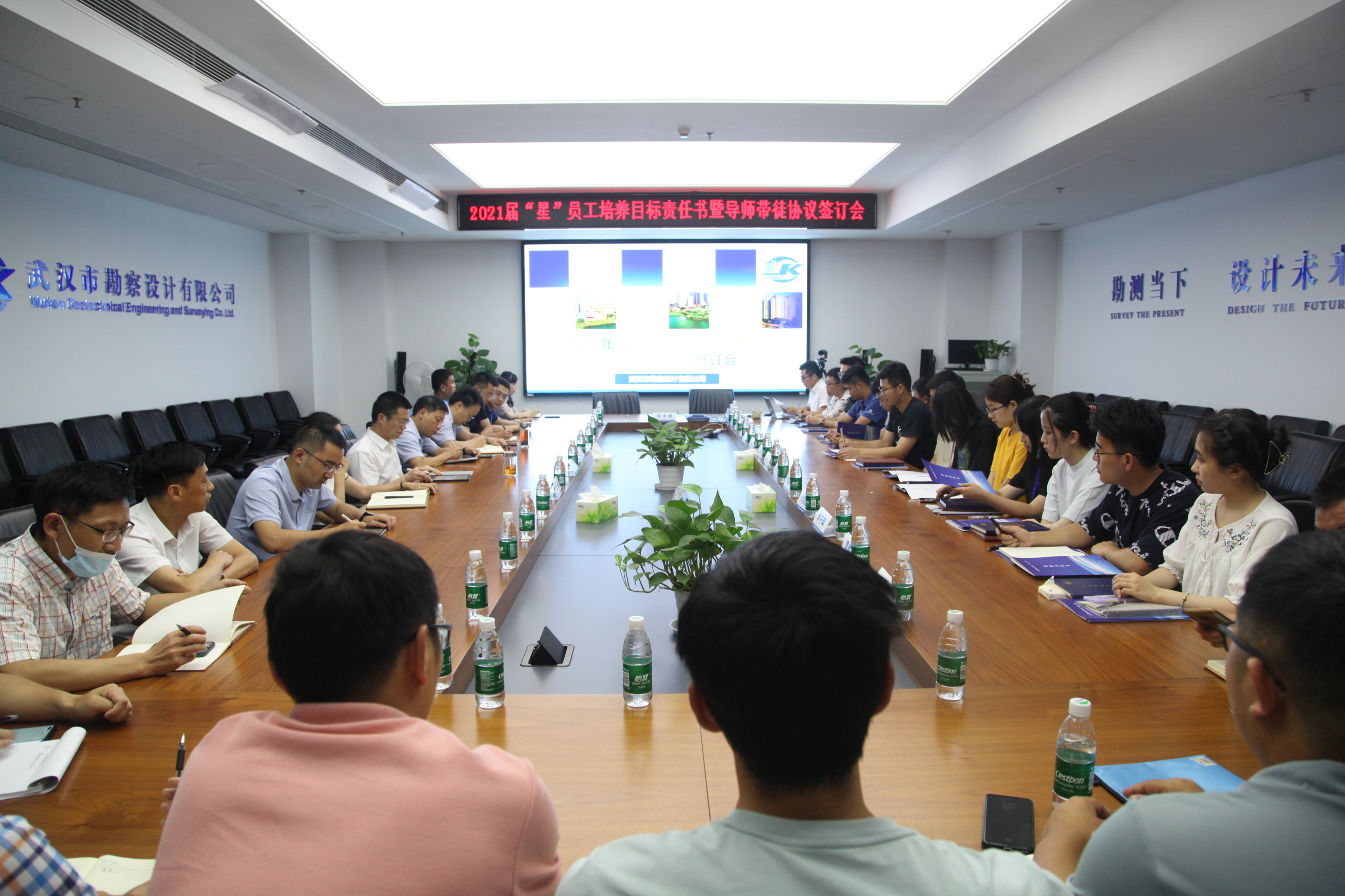 7月20日,公司舉行2021屆“星員工”培養(yǎng)目標責(zé)任書暨導(dǎo)師帶徒協(xié)議簽訂會。會上,各部門2021屆新員工與導(dǎo)師簽訂了師徒協(xié)議,標志著公司2021屆新員工培養(yǎng)工作正式開始。公司總經(jīng)理施木俊及相關(guān)領(lǐng)導(dǎo)出席會議,新員工部門負責(zé)人,2021屆“星員工”及導(dǎo)師參加會議。