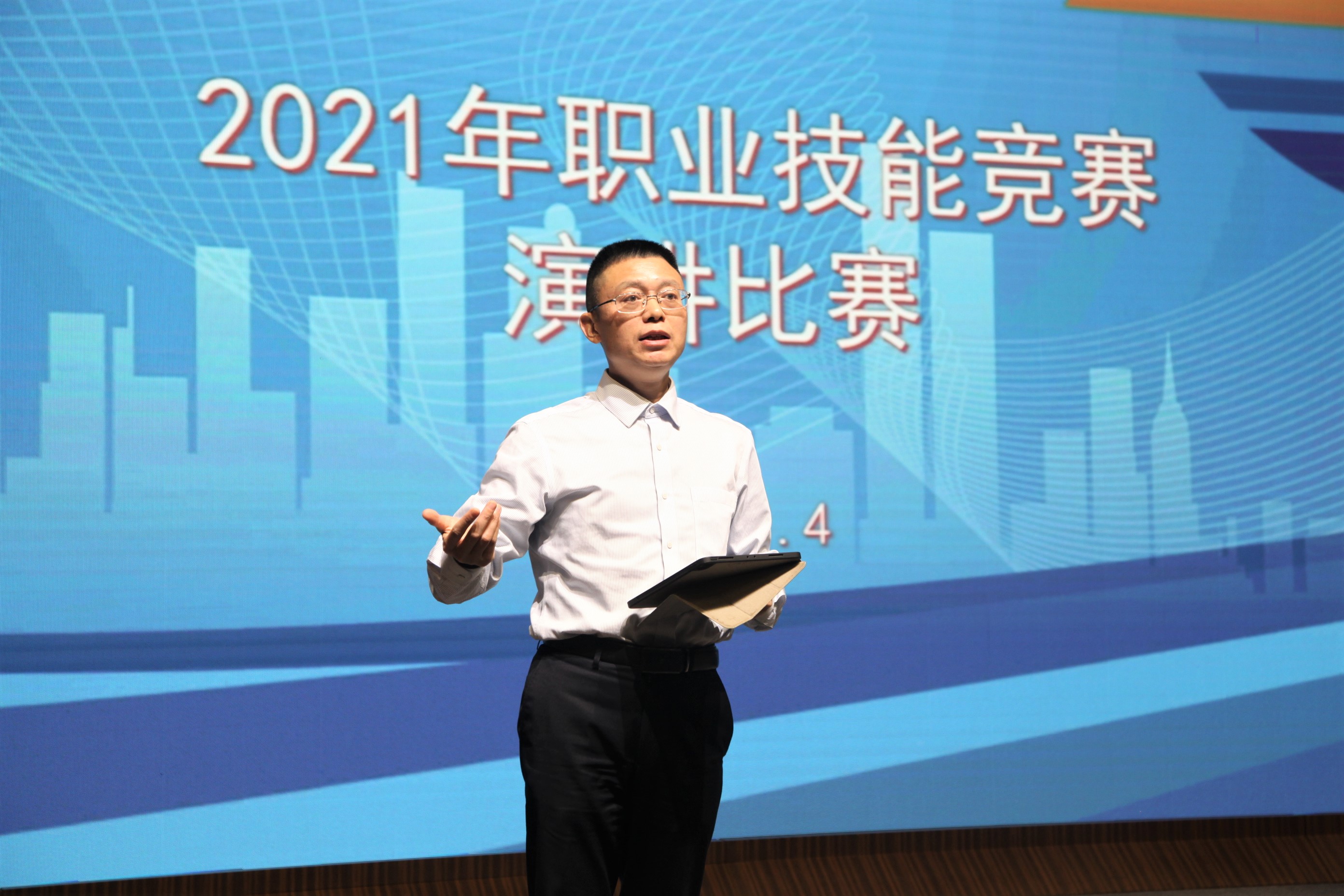 官善友在演講比賽前作動員講話,他希望全體參賽選手以此次競賽為契機,勤學(xué)技能、苦練本領(lǐng)、提升素質(zhì),不斷弘揚勞模精神、工匠精神;并寄語大家嚴守競賽規(guī)則,賽出水平、賽出風格、賽出風采。