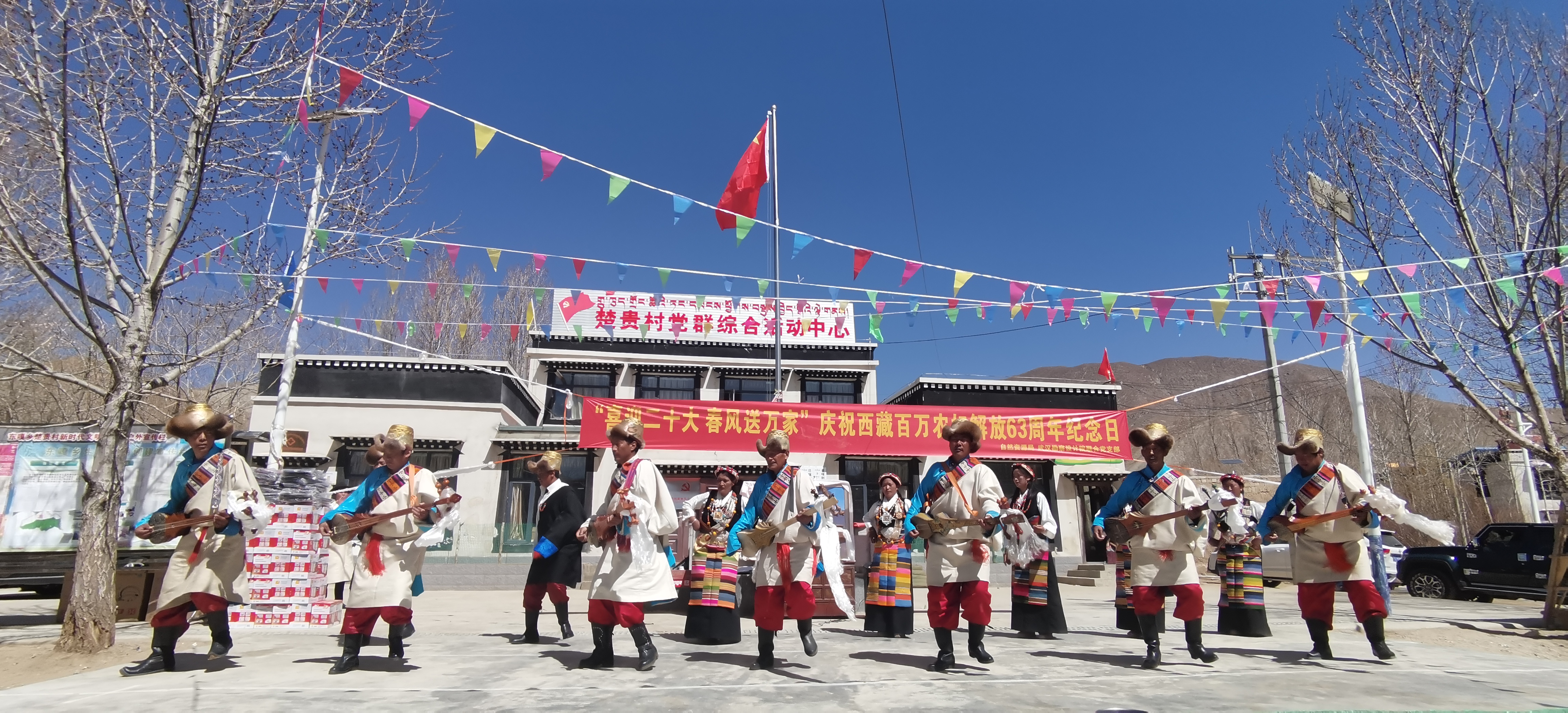 為慶祝西藏百萬農(nóng)奴解放63周年,充分展現(xiàn)西藏民主改革以來社會經(jīng)濟發(fā)展取得的突出成就,3月27日上午,項目黨員突擊隊參與了桑珠孜區(qū)自然資源局、東嘎鄉(xiāng)楚貴村黨支部及駐村工作隊聯(lián)合開展“建設(shè)美麗幸福西藏,共圓偉大復(fù)興夢想——紀(jì)念西藏百萬農(nóng)奴解放63周年”聯(lián)合主題黨日活動。
