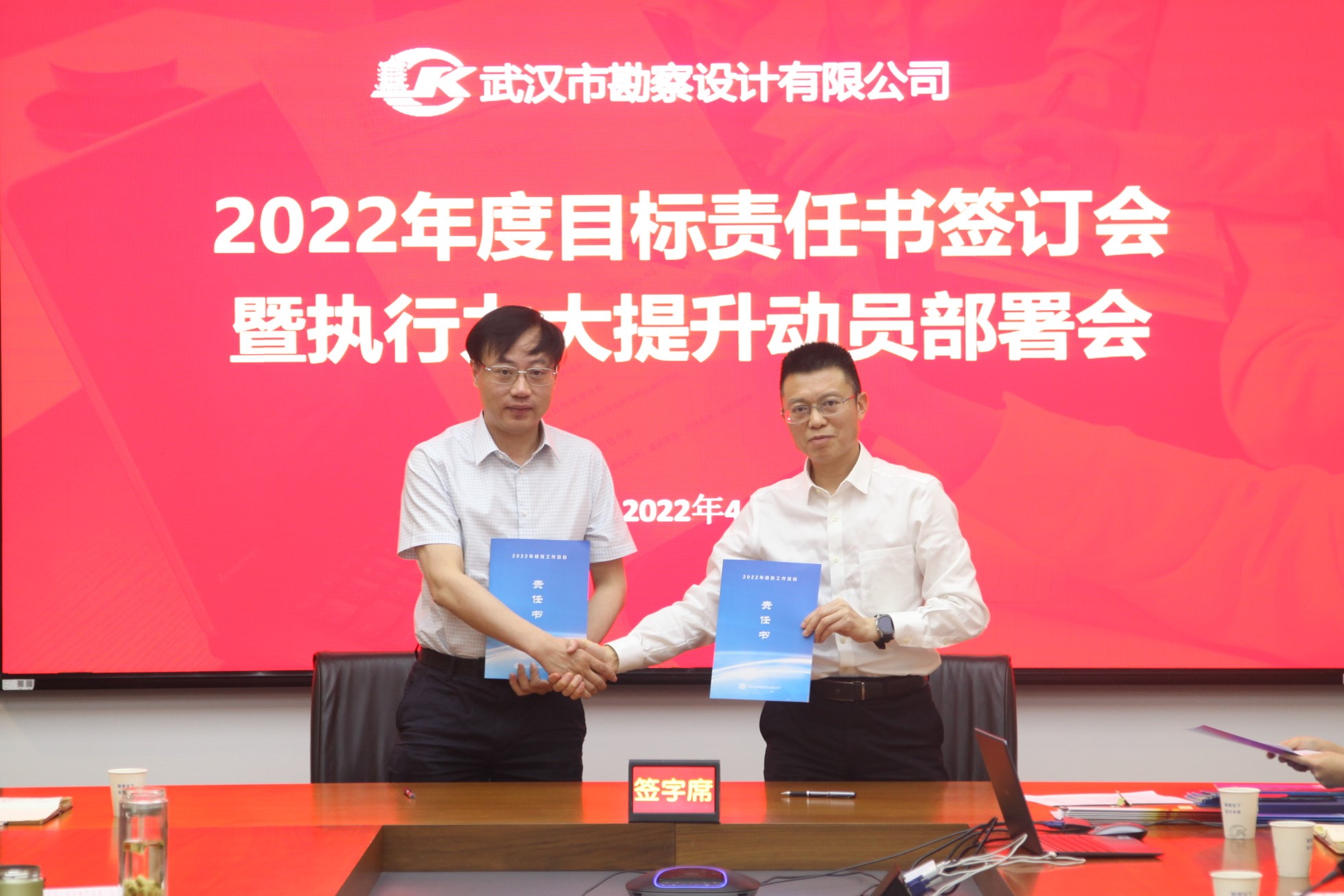 4月14日上午,公司在1717會議室組織召開“執(zhí)行力大提升”行動動員部署會暨2022年度目標責任書簽訂會。會議圍繞武漢城建集團“萬千百十一”、“執(zhí)行力大提升”、“揭榜掛帥”三大行動作出了宣貫部署,以高質(zhì)量完成年度各項任務為目標導向,進一步統(tǒng)一思想、分解任務、強化目標、落實責任,為公司全年工作制定了科學的行動指南、打下了堅實的思想基礎(chǔ)。