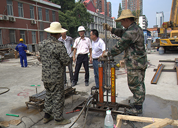 我公司技術(shù)團隊到達后,與地鐵、城建委等相關(guān)部門的工作人員對現(xiàn)場險情進行分析,并制定了搶險方案。一方面,采用管線探測設(shè)備對事故影響范圍內(nèi)的管線進行探測,查明管線分布情況,同時指導(dǎo)勘探工作,避免因勘探工作破壞管線,造成新的事故;另一方面,采用靜力觸探儀對事發(fā)現(xiàn)場進行勘探,查明地層的在險情發(fā)生后的變化情況和搶險控制后的效果,分析再次發(fā)生涌水涌砂的可能性。