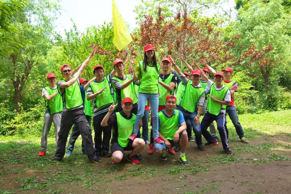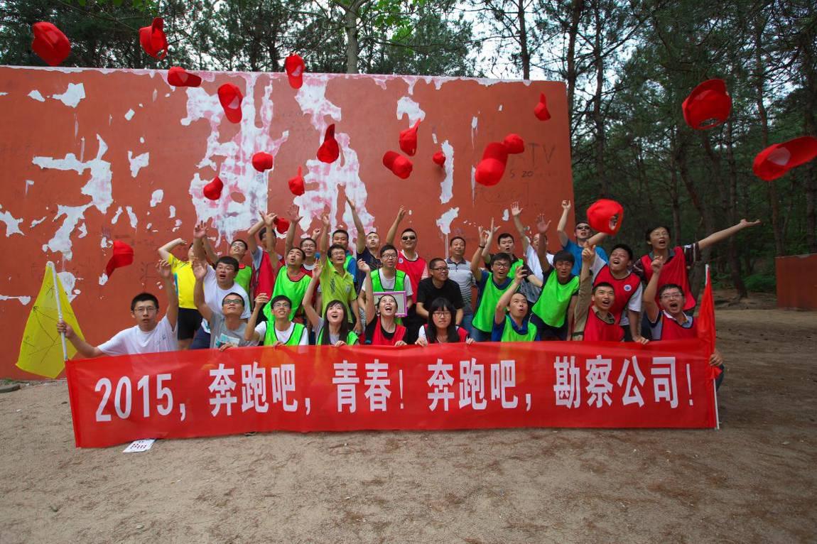 教練向大家講解了戶外拓展活動的要求和具體規(guī)則,并以輕松有趣的熱身方式對學員進行分組后,活動正式開始。所有隊員分成了“尖峰隊”和“王者隊”兩個團隊,分別制定了口號、隊歌,繪制了隊旗,并進行了團隊建設(shè)、團隊融合和團隊展示。在教練的指導下,隊員們攻堅克難,不斷挑戰(zhàn)自我、突破自我,先后完成了“雷區(qū)取水”、“孤島求生”、“羅馬戰(zhàn)車”、“指壓板”、“登山闖三關(guān)”、“挑戰(zhàn)150秒”等多個高難度的項目;顒又,隊員們個個熱情高漲,全力投入,口號、隊歌、掌聲、笑聲和歡呼聲此起彼伏。特別在最后的翻越“畢業(yè)墻”環(huán)節(jié),更是凸顯了勘察設(shè)計公司“勇往直前、團結(jié)一致”的拼搏精神。全體隊員齊心協(xié)力、心往一處想,勁往一處使,用時8分鐘成功翻越了4.2米的畢業(yè)墻。在拓展活動即將結(jié)束時,大家用汗水、淚水、喜悅和成功印證了一個團結(jié)奮進的隊伍、一個勇于面對困境的隊伍、一個內(nèi)心強大的隊伍一定能夠把握機會、戰(zhàn)勝困難、贏得成功。