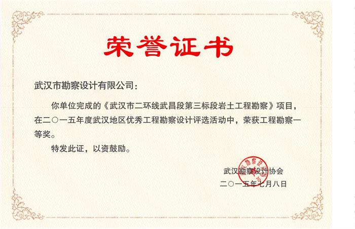 熱烈祝賀我公司在2015年度武漢市優(yōu)秀工程勘察設(shè)計(jì)獎(jiǎng)評(píng)選中,榮獲市優(yōu)秀工程勘察設(shè)計(jì)獎(jiǎng)項(xiàng)八項(xiàng)。
