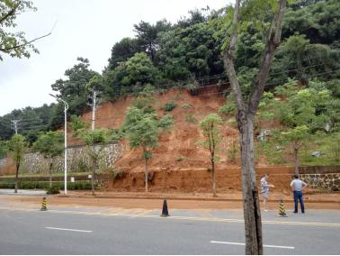 7月5日,受連日暴雨影響,國家人防防空防災教育訓練基地(武漢)公路邊坡出現(xiàn)多處垮塌,垮塌巖土體散落于邊坡坡腳排水溝及基地公路路面附近,影響了道路通行。公司應急搶險團隊火速趕到現(xiàn)場清除滑塌堆積體,及時開展填方邊坡與公路之間的土體防滲工作,重新架構(gòu)起已沖毀的管道,用毛石、砼等填筑洗空區(qū),采用削方減緩已垮塌邊坡坡度,最大程度還原了邊坡原貌,并不斷加大巡查力度,做好了基地公路沿線類似地質(zhì)災害潛在隱患的預判和預處置。