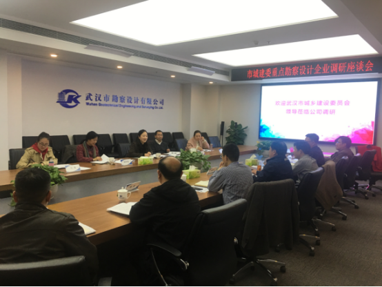為全面了解武漢市勘察設(shè)計(jì)企業(yè)經(jīng)營狀況,切實(shí)掌握企業(yè)運(yùn)行情況,更好的為企業(yè)發(fā)展服務(wù),3月16日下午,市城建委林琨副主任、設(shè)計(jì)處徐海清處長(zhǎng)、設(shè)計(jì)之都發(fā)展中心(審查辦)胡華瑩副主任、海管辦劉婕科長(zhǎng)、節(jié)能處明珊科長(zhǎng)赴我司進(jìn)行了考察調(diào)研。市測(cè)繪院肖建華院長(zhǎng),公司廖建生董事長(zhǎng)、施木俊總經(jīng)理及其他高管層、職能部門負(fù)責(zé)人參加了座談。