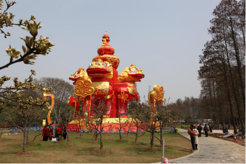 2018年東湖燈會于2月23日至3月31日在武漢市東湖聽濤風景區(qū)梨園舉辦。自開幕以來,燈組“雄獅賀歲”一直備受關注,多次在各大電視欄目以及報紙頭版刊發(fā),“雄獅賀歲”燈組構圖有創(chuàng)意,以四面雄獅為設計主體,周圍環(huán)繞著6柄玉如意,燈組頂端是一個和平寶尊,寓意世界太平、吉祥如意。