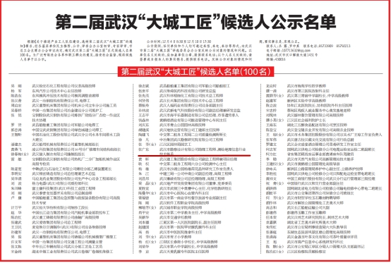 為了大力弘揚(yáng)“工匠精神”,厚植工匠文化,進(jìn)一步激發(fā)廣大職工凝心聚力、拼搏趕超的工作干勁,市總工會(huì)于2018年8月起在全市范圍內(nèi)開展了第二屆武漢“大城工匠”選樹工作。評選活動(dòng)歷時(shí)4個(gè)月,經(jīng)各基層單位民主推薦、公示、評委會(huì)辦公室初審、專家評審、市總工會(huì)主席辦公會(huì)審議決定,確定了武漢第二屆“大城工匠”正式候選人名單100名,并于12月5日在長江日報(bào)第五版正式登報(bào)公示。我公司測繪工程公司總經(jīng)理助理、全國測繪地理信息行業(yè)技術(shù)能手張廣東同志榮獲第二屆武漢“大城工匠”。