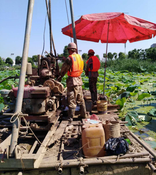 本工程任務重,勘探工作量大,開工前項目負責人對現(xiàn)場鉆探人員進行了技術交底、環(huán)安教育及思想工作?辈炱陂g正值持續(xù)高溫天氣,給外業(yè)工作帶來了巨大挑戰(zhàn),但工作過程中項目成員及鉆探人員吃苦耐勞、堅守崗位,加班加點,保證外業(yè)進度的同時,也不懈怠安全生產(chǎn)及質(zhì)量把控,使得勘察工作有條不紊的進行。