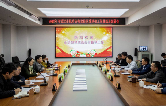 2019年1月23日下午,武漢市國土資源和規(guī)劃局在我公司組織召開了“2018年度武漢市地質(zhì)災(zāi)害危險(xiǎn)性區(qū)域評(píng)估工作總結(jié)及部署會(huì)”,對(duì)地質(zhì)災(zāi)害危險(xiǎn)性區(qū)域評(píng)估工作進(jìn)行了總結(jié),并對(duì)下一步工作做出部署。會(huì)議由市局地質(zhì)礦產(chǎn)處蔡愛龍?zhí)庨L主持,市局田燕總工程師出席會(huì)議并講話,市測(cè)繪院、局信息中心、市勘察設(shè)計(jì)公司相關(guān)領(lǐng)導(dǎo)及項(xiàng)目組團(tuán)隊(duì)參加了會(huì)議。