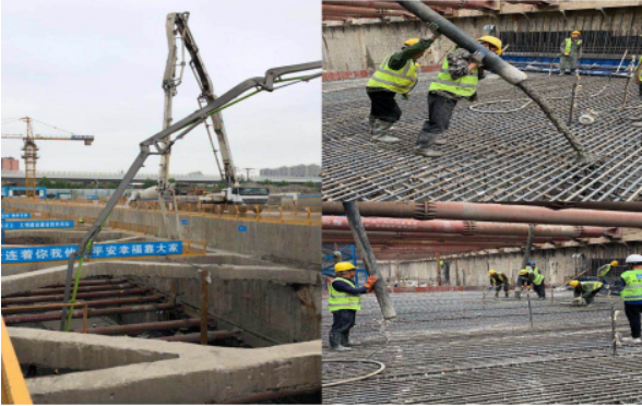 漢口濱江國際商務區(qū)地下環(huán)路首塊底板澆筑成功