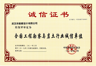 公司順利取得“全國工程與巖土行業(yè)誠信單位”誠信證書